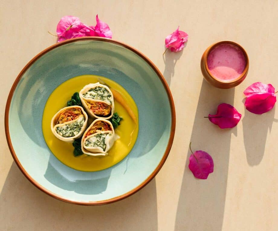 Food plays a starring role in all of our vegan travel adventures and that was most certainly the case at Six Senses Fort Barwara. Our days started with long and lazy breakfasts at Cortile with everything from smoothie bowls and coconut chia puddings, to masala dosa and idli that reminded us we were in India. We enjoyed baked vegetables that were rich, smoky, and comforting and pani puri with their crispy shells filled at the table with spiced water and chutneys that were delicious.