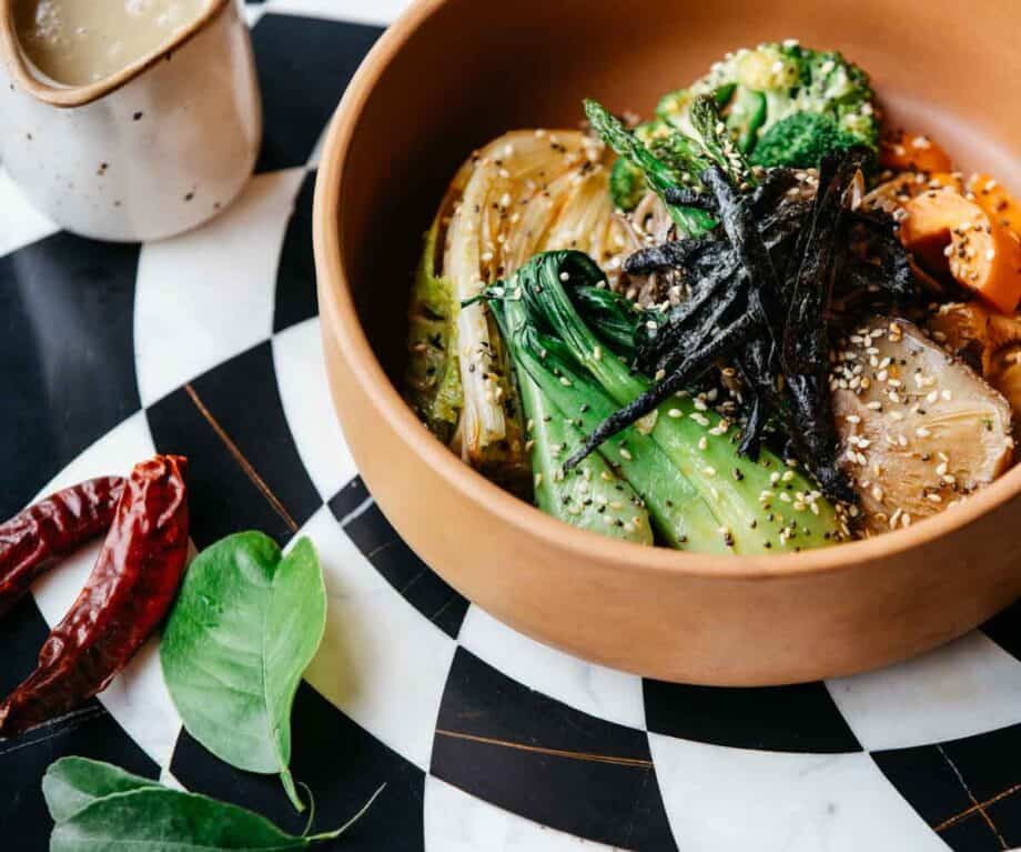 The food was quite simply beautiful too, a vegetable wrap served on wilted spinach and pumpkin cream with a vibrant beetroot latte, followed by a small and delicate chocolate dessert that was light yet deeply satisfying. The thali platters were our favourites, the round tray with mini bowls, each of them filled with balancing ingredients in line with what our doctors had prescribed. What stood out most was the attention to detail. Vegan food was not tucked away on a separate page or adjusted as an afterthought. It was part of the fabric of every menu. Even the buffets had clear labels for each dish, something we rarely see executed so well.