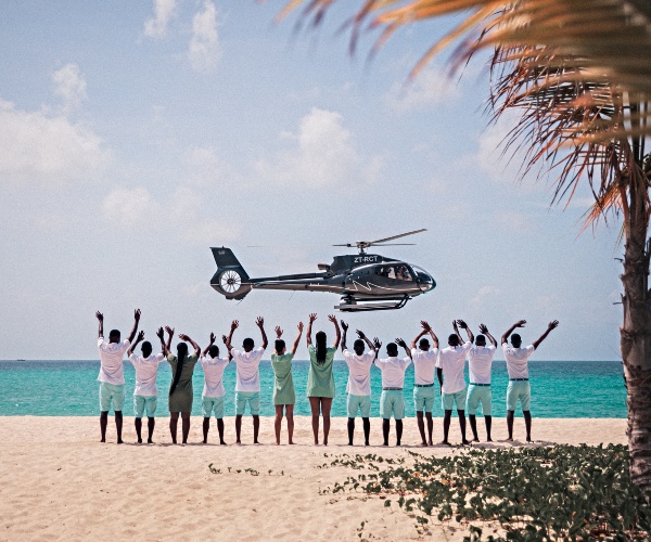 Our helicopter rose into the sky and the whole of the Indian Ocean seemed to stretch out before us, glistening turquoise. A thirty minute hop away by helicopter, Thanda Island, a tiny teardrop of sand off the east coast of Tanzania, awaited us. Looking below we could see a traditional fishing dhow, carving its way through the azure water.