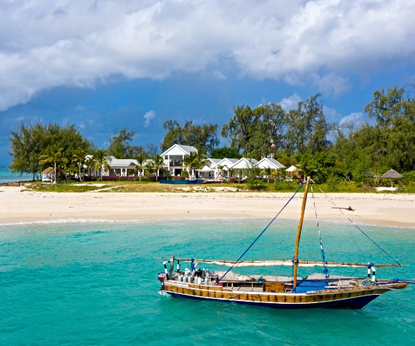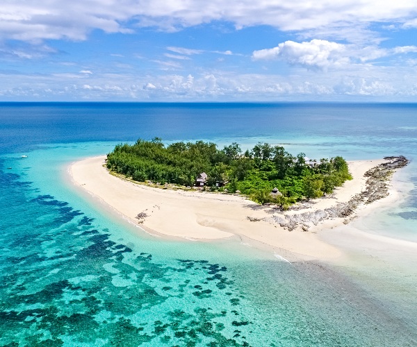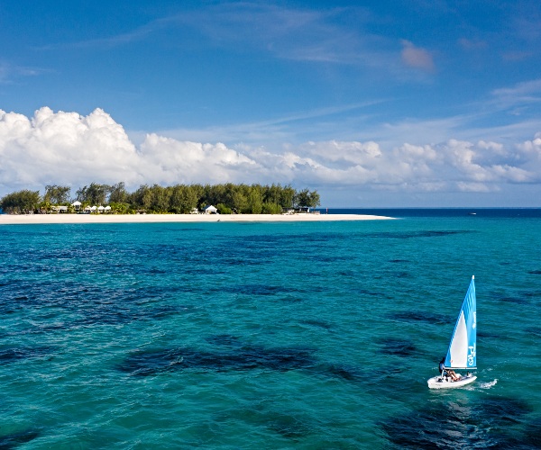 Located in the Shungi Mbili Island Marine Reserve, a marine protected area between the Tanzanian mainland and the Mafia Island archipelago, this shark fin shaped triangle of sand is a secluded paradise, surrounded by coral reefs, that protect it from stormy seas.