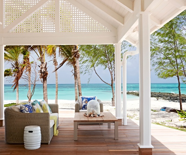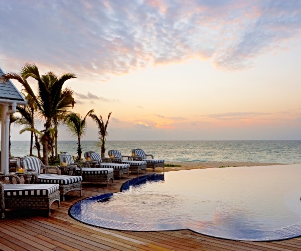 In the spacious living area, there’s an indoor aquarium filled with tropical fish, a private library, a Steinway grand piano, an impressive wine collection and even a cigar humidor. The outdoor dining area has 180⁰ views out over the ocean and the glass sided infinity pool. There are two, double story thatches chalets on the other side of the island, for those of your party who may want a bit more seclusion.