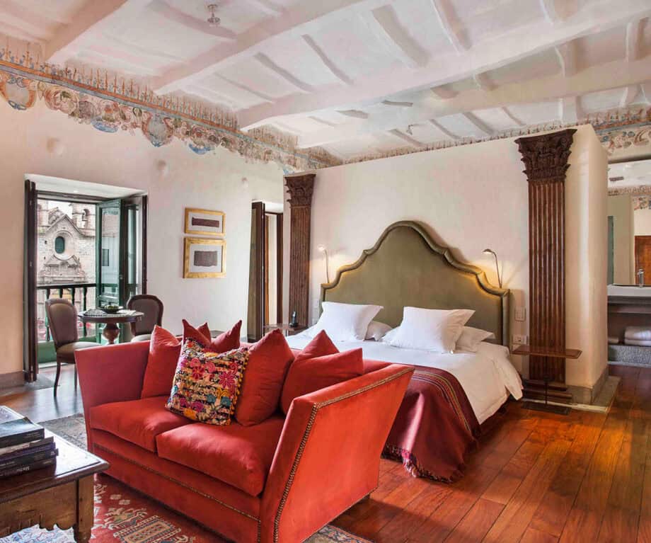 Once a 16th-century colonial mansion and a UNESCO World Heritage Site, the hotel now features 15 spacious suites, each with private balconies, arranged around a serene courtyard. Each suite combines original architectural details with contemporary amenities, including oxygen-enriched air systems to ease the effects of high altitude.