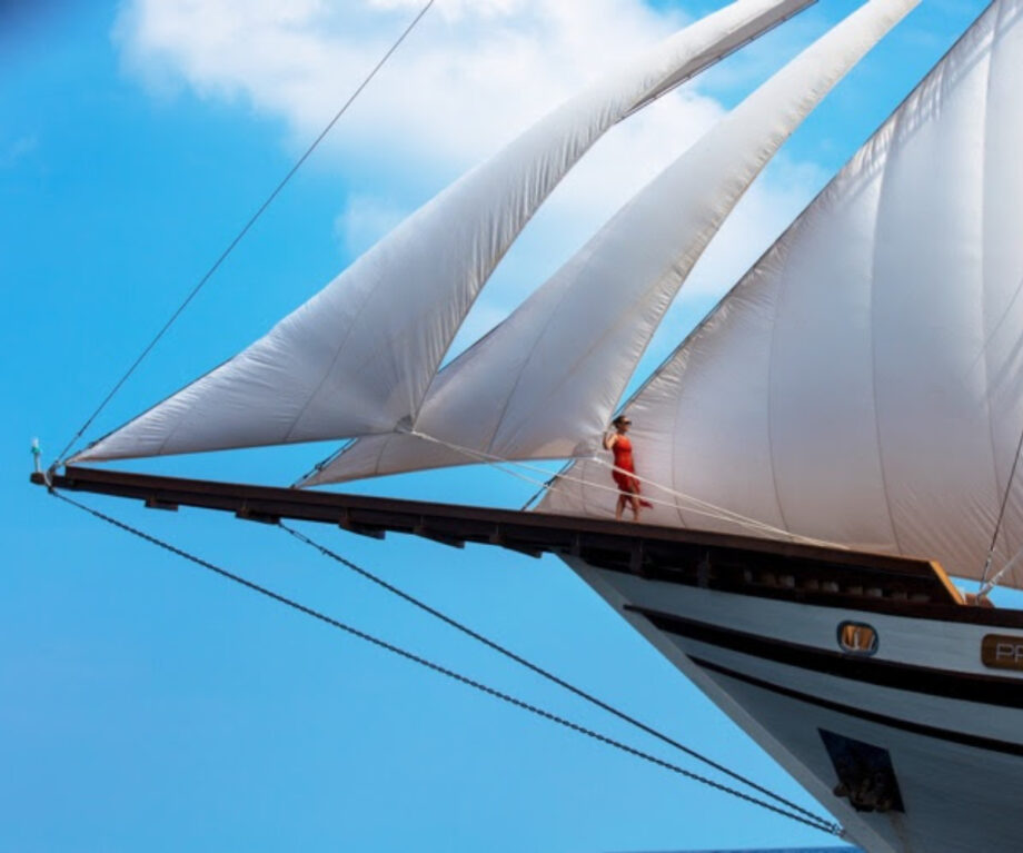 At just over 55 metres in length and 11 metres wide, Prana by Atzaró has been crafted in the style of a traditional Indonesian phinisi, a sailboat with two masts. It is built entirely of ironwood and teak, according to traditional methods and has been created by the founders ofAtzaró Group, the Ibiza based five-star hospitality brand.