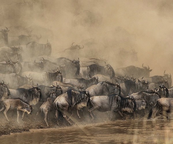 Wildebeest migration in the Masai Mara from July