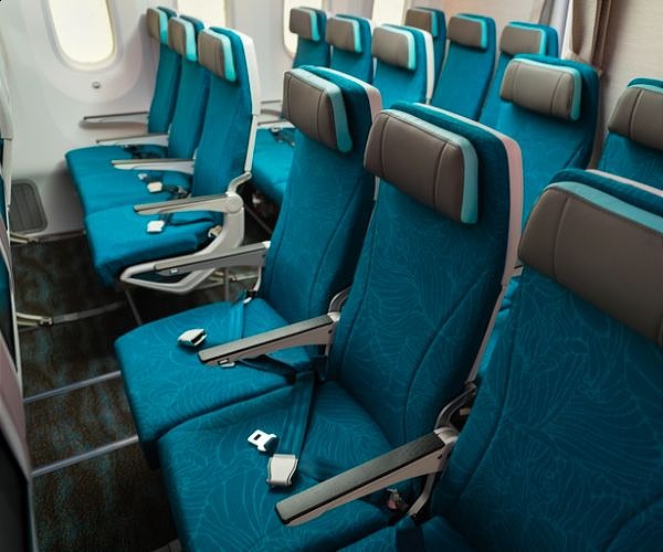 In Hawaiianʻs 787 Dreamliner Main Cabin, consisting of 266 Collins Aerospace Aspire seats with ergonomically contoured back and arm rests, guests will enjoy a lightweight, modern design that maximizes seat space, offers more shoulder and hip room, and features a 12-inch seatback monitor with USB-A and USB-C charging ports.