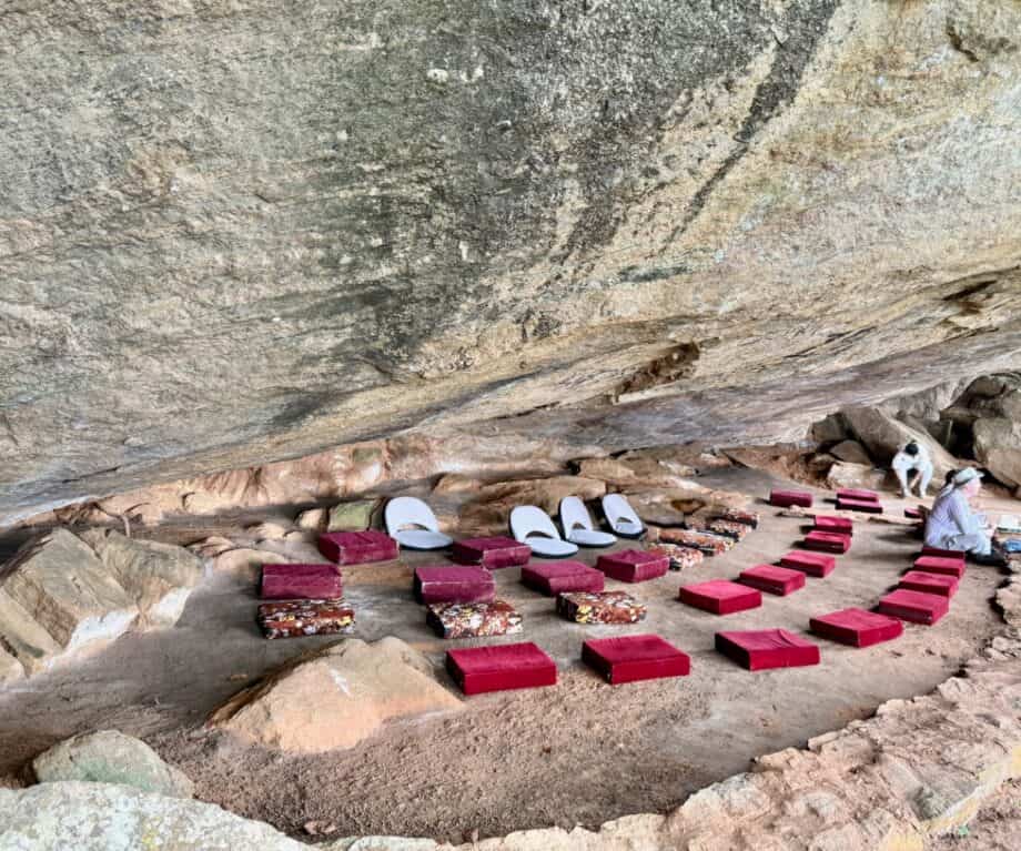 Rideegama, a designated Spiritual Destination is near Dambulla in the Central Province of Sri Lanka. The extensive grounds of this religious complex include the ancient Silver Temple (Ridi Viharaya) a Buddhist temple built on a hill riddled with caves and a temple inside a cave. It is not an easy walk between the two but I was not deterred by the steep descent and uneven steps. Once in the cave temple (equipped with comfy cushions) we were introduced to some simple meditation techniques by a Priest. A calming experience after the heart-thumping scramble to get down there and one I did find useful later to avert travel-related stress.