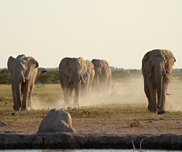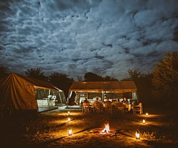 The sun sank low in the sky, and from our chairs around the fire we listened to the sounds of the desert. The eerie calls of jackals filled the air, and the night sky echoed with their yips and howls. One by one stars appeared in the sky overhead, and the jackals became quiet. The only sound was the crackling and spluttering of the fire, as the burning logs tumbled to ashes. As we moved from the fire to the dining tent, we could hear hyenas whooping in the distance. The solitude and stillness of Botswana’s Nxai Pan was all around us.