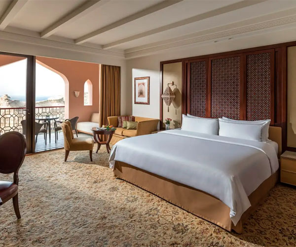 Rooms and suites at Al Bustan Palace are opulent and spacious, featuring elegant furnishings, plush beds, and luxurious amenities. They are designed with comfort and style in mind, offering beautiful views of the sea, gardens, or the surrounding mountains.