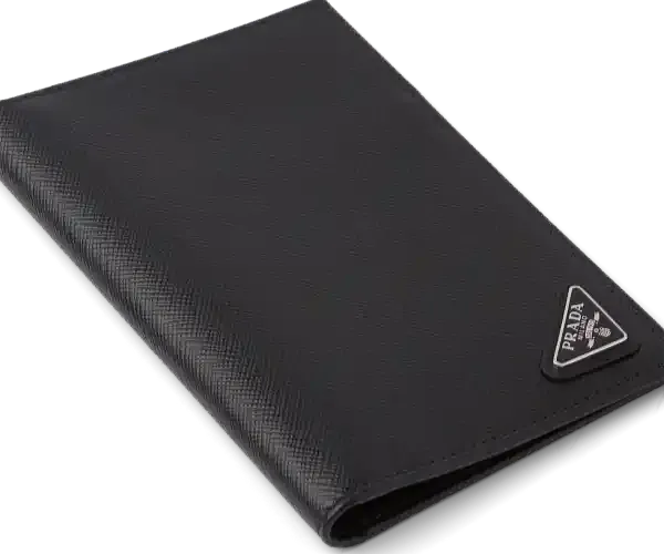 The triangle logo first introduced on trunks designed by Mario Prada decorates this passport holder, an accessory that blends modernity and tradition. Keep Dad’s passport secure and stylish with this holder from premium Saffiano leather – an elegant accessory that not only protects important travel documents but also adds a touch of sophistication to his journeys.