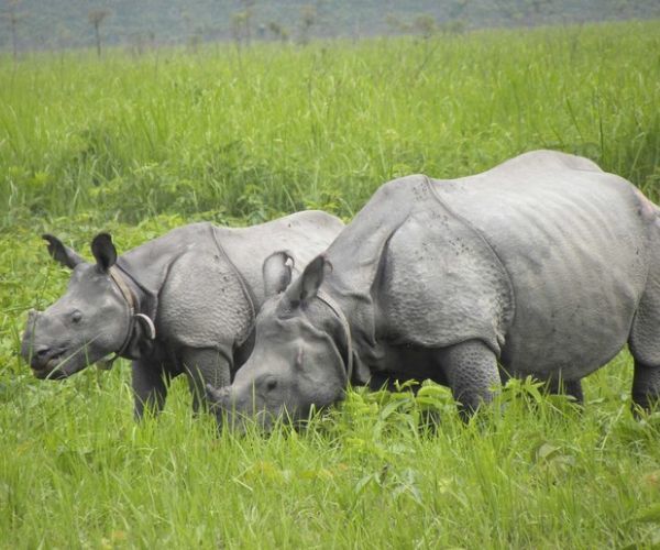Manas National Park is a Wildlife Sanctuary, UNESCO Natural World Heritage site, a Project Tiger Reserve, an Elephant Reserve and a Biosphere Reserve in Assam, India located in the Himalayan foothills, it is contiguous with the Royal Manas National park in Bhutan. Manas National Park is the home of 55 species of mammals (21 of them are India’s Schedule I mammals and 31 are threatened), 380 species of birds, 50 of reptiles, and three species of amphibians. The species of fauna of Manas National Park include Indian elephants, Indian rhinoceros, gaurs, Asian water buffaloes, barasingha, Indian tigers, Indian leopards, clouded leopards, Asian golden cats, dholes, capped langurs, golden langurs, Assamese macaques, slow loris, hoolock gibbons, smooth-coated otters, sloth bears, barking deers, hog deers, black panthers, sambar deers and chitals.