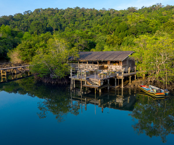 Soneva Kiri itself is a destination like no other, with dreamy locations and memorable views throughout the resort. But dining at Kruua Mae Tuk (Tuk’s Kitchen) takes this to another level. Depending on water levels, you can head deep into the mangroves on a boat to reach the restaurant. At other times of year a short drive through the jungle sees you arrive at this ‘no-menu’ restaurant with Chef Tuk at the helm. With her team, she creates authentic and traditional Thai food which is served overlooking the mangroves and surrounded by natural beauty. Our multi course plant based experience at Kruua Mae Tuk was outstanding.