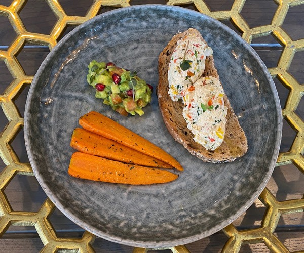 The vegan food at Hyatt Regency Kathmandu was delicious and varied. Not all of the F&B outlets were open, but we were lucky enough to enjoy some ‘off menu’ items during our stay that will hopefully make it onto the menu in the future. The breakfast buffet was extensive as you’d expect from a five star hotel and with not much effort we were able to find plenty of vegan options. Freshly prepared dosas, steamed idli and some of the curries were vegan, whilst there were plenty of tropical fruits, salad, breads and homemade jam. Upon request they arranged soya milk for us and also kindly prepared tofu scramble on toast, with smashed avocado and roasted carrots. We also enjoyed the Hyatt Regency Kathmandu’s take on pani puri; a true regional street food classic but elevated to five star status. Other highlights included a mezze platter which took us on a culinary journey straight to the Middle East. Both of these dishes were delightfully presented and packed with flavour.
