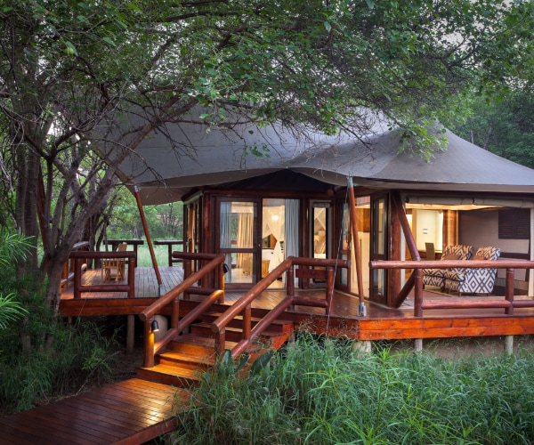 There are two 4* luxury lodges on the reserve. The lovely Tuli Safari Lodge Mashatu offers 8 gorgeous, tented suites in a wonderful setting along the banks of the great Limpopo River, on the parks southern border. Each suite is designed with classic “Out of Africa” safari style, think muted canvas, crisp white linens, billowing mosquito nets and wrap-around decks that allow you to drink in the verdant nature all around you.