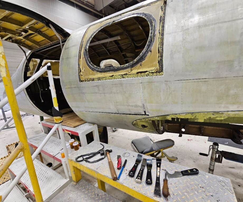 Our visit finished on a nostalgic high note and in an area where we could once again take photographs. The Classic Lear Jet Foundation’s restoration of the very first customer-delivered Learjet (serial 23-003) is being overseen on the campus, in Building 14—the former Learjet delivery facility.